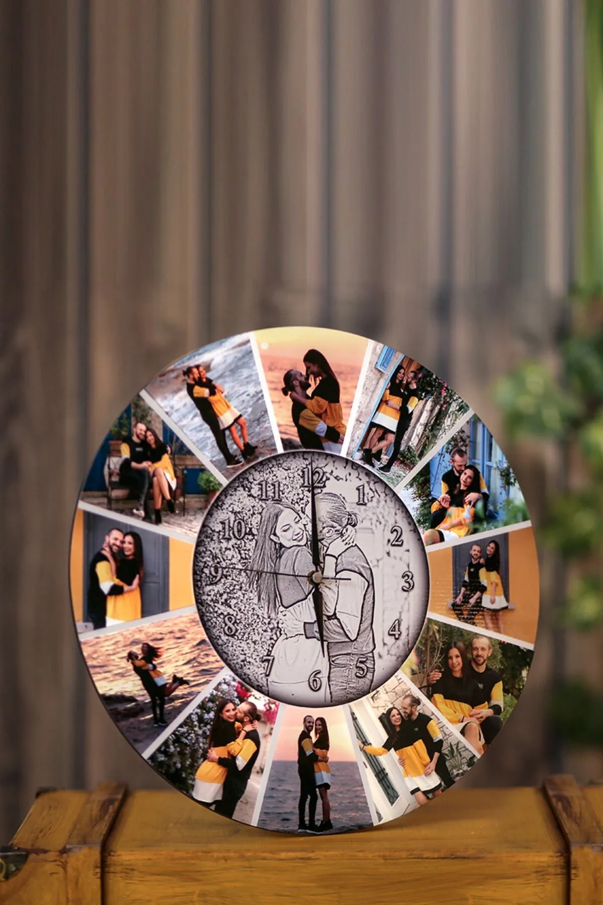Kişiye Özel 13 Fotoğraflı Ahşap Duvar Saati ile Anılarınızı Her An Yaşayın